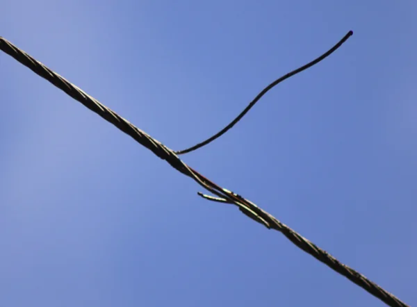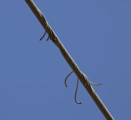 A broken conductor in critical condition was found while completing a review of the utility’s network. There are several strands that are completely broken on the conductor, warranting an immediate repair.
